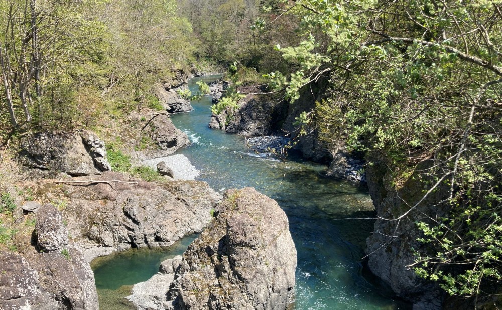 Sakashita Senkyo is a scenic spot located in the upper reaches of the Rekifune River (Takushin area).