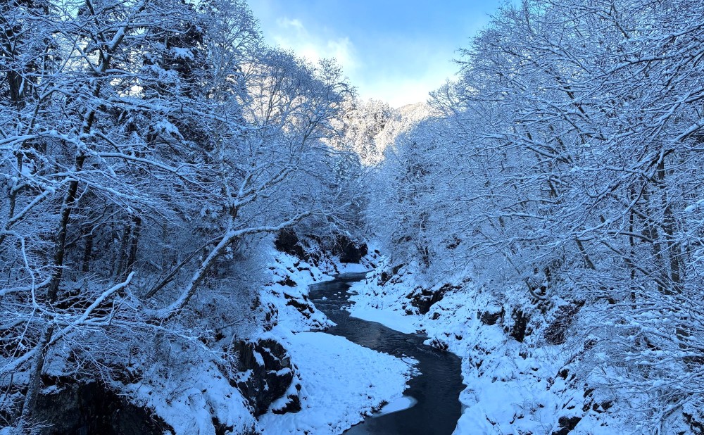 林道を抜けた先にある、静かで美しい景勝地です。緑に囲まれた歴舟川の清流を楽しめる夏、少しずつ色付いてゆく紅葉を楽しめる秋など、四季折々の表情が魅力です。